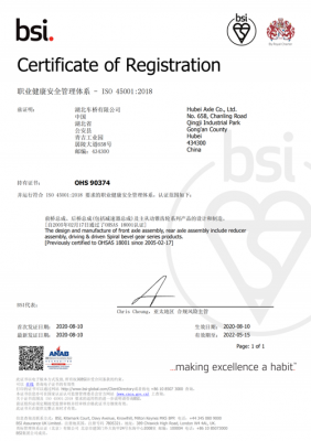 業內率先通過英國BSI公司的ISO9001/TS16949(質量)、ISO14001(環境)和OHSAS18001(職業健康安全)三項標準認證;