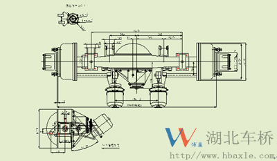 401K75-010-5.286主減速器總成是我廠根據客車廠家的要求,設計突緣端面至橋殼中心線距離為280mm(見如下安裝尺寸圖)。主從動錐齒輪是專門針對客車要求噪音低、壽命長等特點而開發的,其傳遞扭矩16500N.M,裝配成總成后噪音在84dB以下,壽命可達70萬次以上,深受用戶的好評。