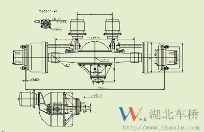 2402B104-0101-4.33主減速器總成,設(shè)計突緣端面至橋殼中心線距離為318mm(見如下安裝尺寸圖)。主、從動錐齒輪是專門針對客車要求噪音低、壽命長等特點,其傳遞扭矩18000N.M,裝配成總成后噪音在84dB以下,壽命可達70萬次以上,深受用戶的好評。