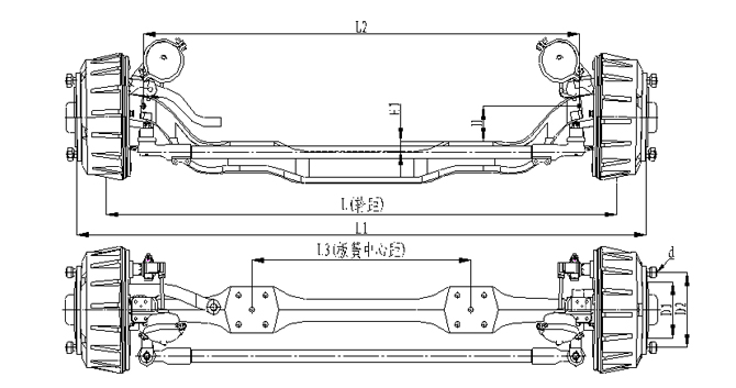 1.前軸為整體鍛造結構,采用加強設計,承載能力強; 2.輪距、板簧距可靈活調整;3.車輪輪輞定位方式可采用球面定位或止口定位