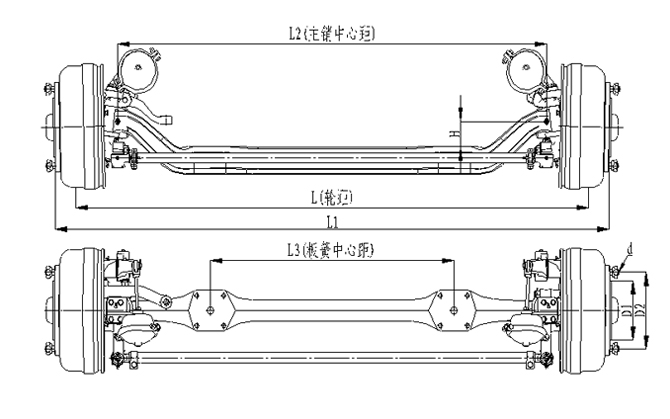 1.前軸為整體鍛造結(jié)構(gòu),承載能力強(qiáng);2.采用專用客車制動(dòng)鼓(帶散熱孔及散熱筋)和摩擦片,具有散熱效果好,使用壽命長(zhǎng)的優(yōu)點(diǎn);3.車輪輪輞定位方式可采用球面定位或止口定位;4.輪距、板簧距可靈活調(diào)整;