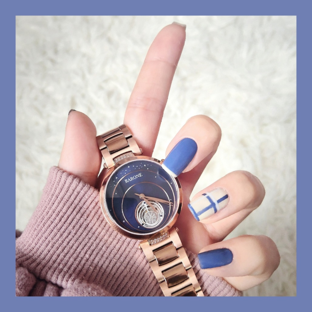 送手表,推薦雷諾的這款女士手表,大氣上檔次,顏值滿分。表盤中繁星點點點綴,漸變的色調演變,如星空的藍色溫柔浪漫,搭配簡單的基礎款衣服都很好看,簡單不單調,超顯氣質。
