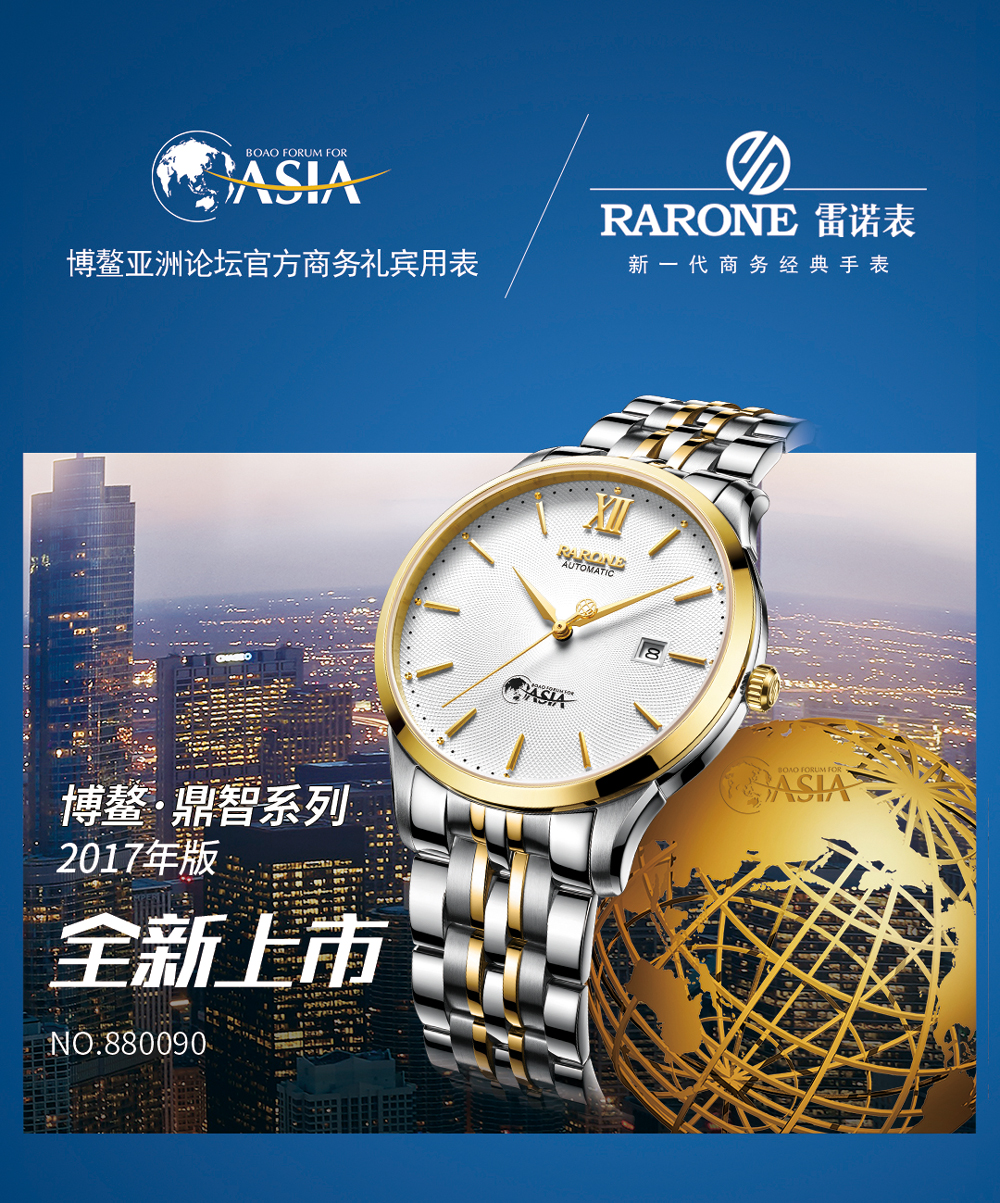 2017年3月23日-26日,博鰲亞洲論壇2017年會如期在海南博鰲鎮(zhèn)舉行,來自全球各國政府、工商界和學(xué)術(shù)界的領(lǐng)袖人物進(jìn)行為期四天的高端對話,通過博鰲亞洲論壇年會為更具包容性的全球化出謀劃策。今年是雷諾表攜手博鰲論壇,成為博鰲亞洲論壇官方商務(wù)禮賓用表的第八年,八年之交,共勉共進(jìn)!雷諾表持續(xù)以博鰲·鼎智系列商務(wù)腕表見證商界精英馳騁博鰲的風(fēng)采。