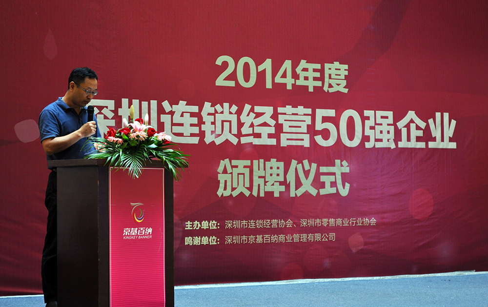 9月16日下午,2014年度“深圳連鎖經(jīng)營(yíng)50強(qiáng)企業(yè)”頒牌儀式在深圳市南山京基百納舉行。來自市經(jīng)貿(mào)信委、各區(qū)經(jīng)促(服)局等領(lǐng)導(dǎo)以及50強(qiáng)企業(yè)的代表出席了頒牌儀式。雷諾表憑借在零售系統(tǒng)的優(yōu)秀經(jīng)營(yíng)和管理實(shí)力,再次榮獲2014年度“深圳連鎖經(jīng)營(yíng)50強(qiáng)”榮譽(yù)稱號(hào)。
