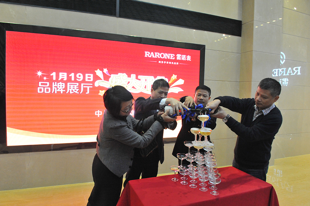2015年1月19日,隨著喜慶的炮竹聲響,雷諾表總部展廳盛大開(kāi)業(yè)!董事長(zhǎng)詹西洲先生,總經(jīng)理詹江洲先生,及詹省洲先生出席開(kāi)業(yè)慶典,并親自推開(kāi)展廳大門(mén),宣布展廳正式開(kāi)業(yè)迎賓!雷諾表全體員工以及來(lái)自全國(guó)各個(gè)省市的區(qū)域經(jīng)理,共同見(jiàn)證了2015年開(kāi)年盛事。