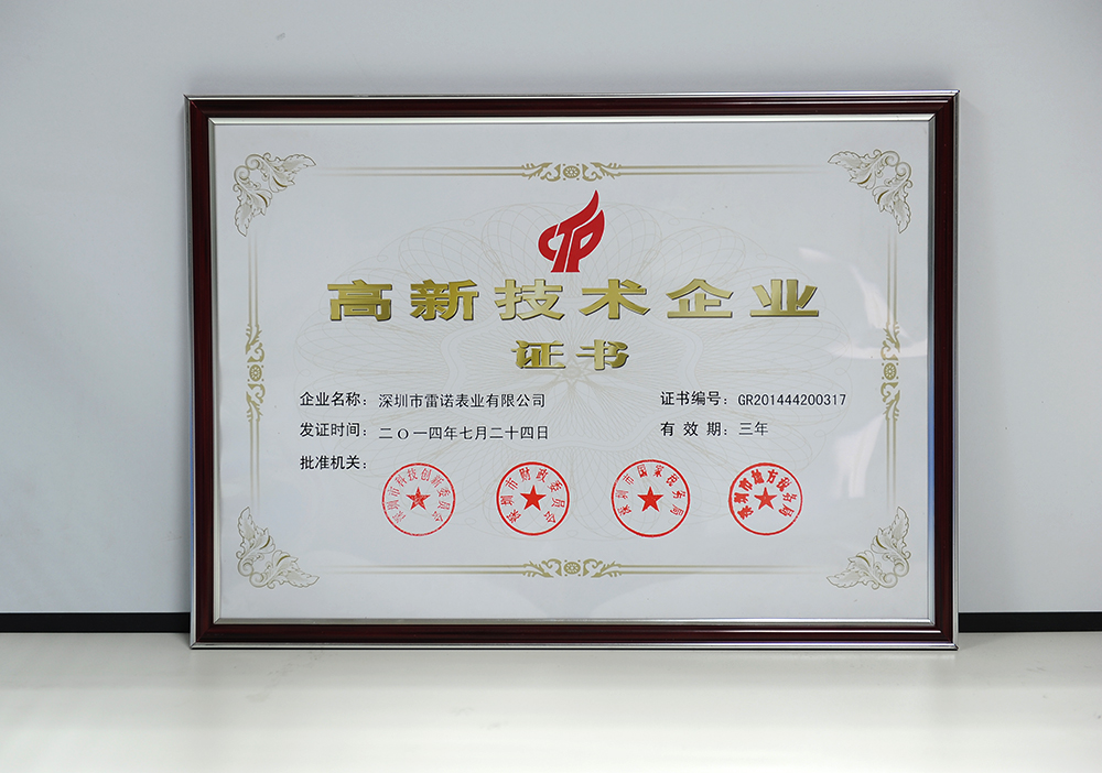 經過國家科技部、財政部等相關部門的嚴格審核,雷諾表被認定為“國家級高新技術企業”!這標志著雷諾表在自主知識創新、核心專利產權,科技技術研發及成果轉化方面,均達到行業水平,且在鐘表領域中具有較強的市場價值和資本價值。