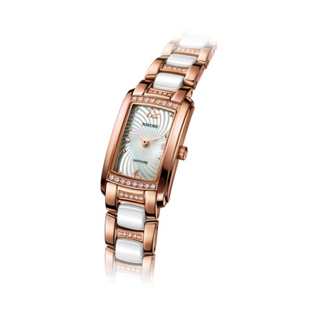 輕薄間陶瓷表帶,鑲嵌40顆閃耀鋯石,纖細(xì)的線條,優(yōu)雅的長方形表殼、表盤設(shè)計干凈簡潔,典雅別致,使腕表更像是增加了計時功能的手鏈,陪伴主人精致的出席各種場合。